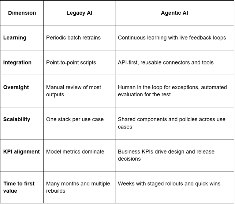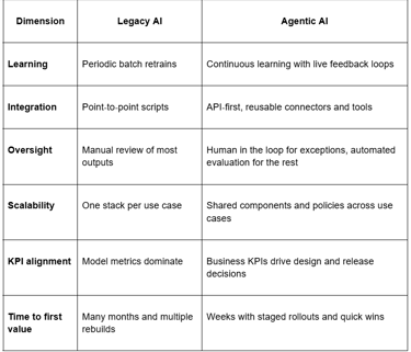 Legacy AI isn’t failing because AI is broken. It’s failing because of hidden costs and brittle systems. The transition from legacy AI to Agentic AI isn’t just a technology upgrade: it’s a strategic shift.